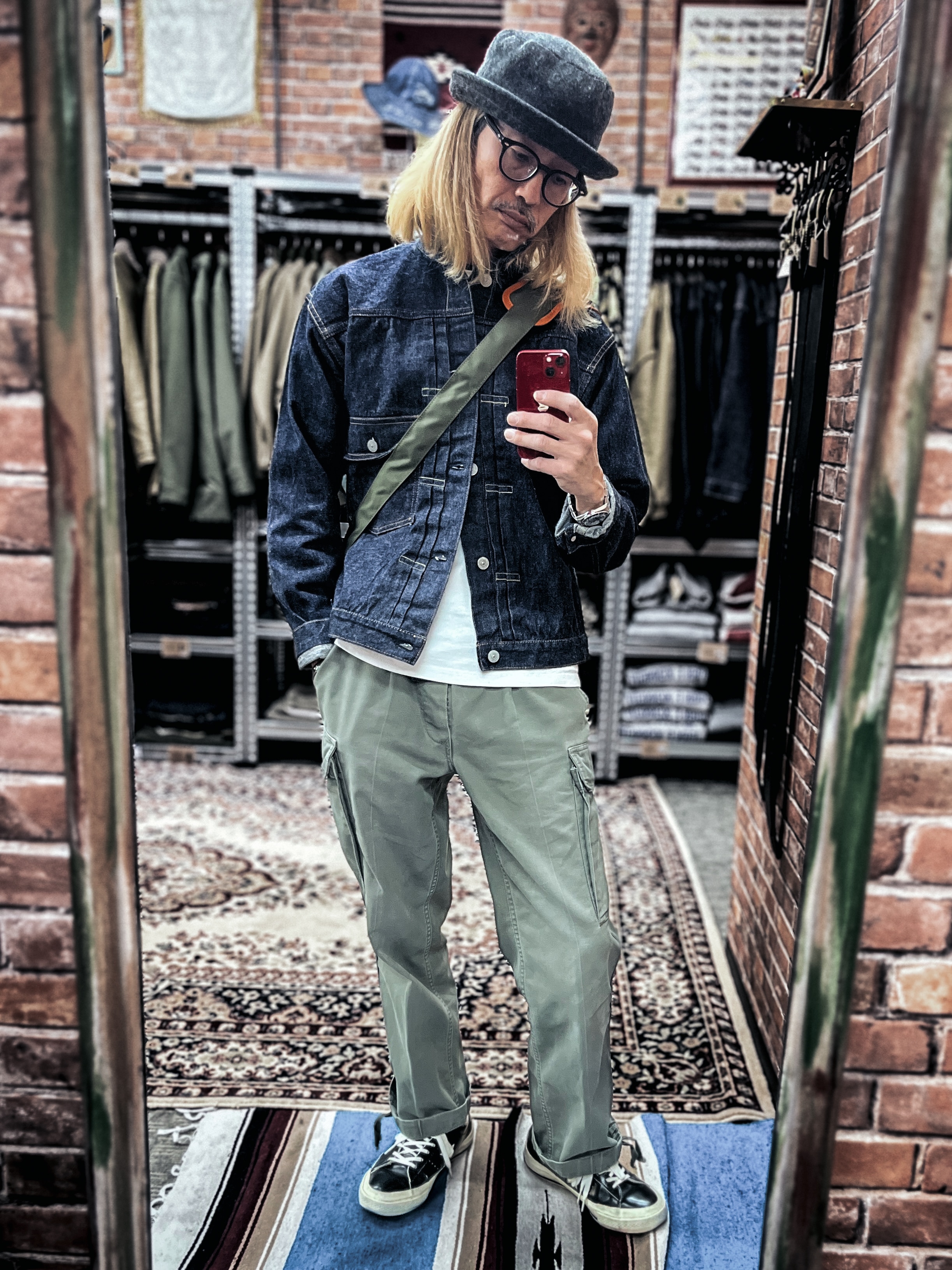 レザーのコンバース、上品なハット、機械式腕時計、そしてバッグ